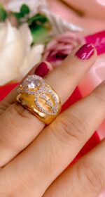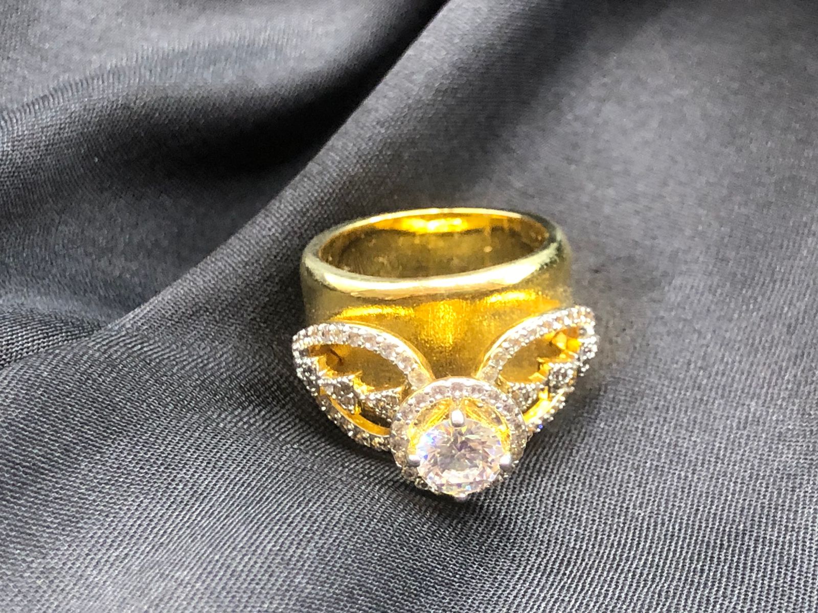 GOLD PLATED CUBIC ZIRCONIA RING.