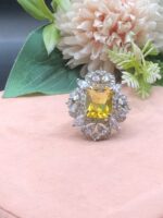 SILVER PLATED MADE WITH CUBIC ZIRCONIA RECTANGLE AD YELLOW-TOPAZ RINGS.