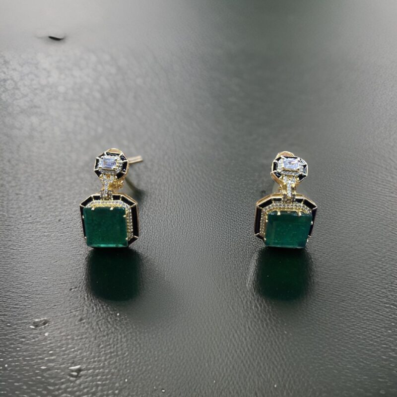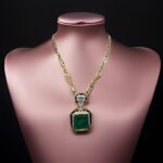 Greeen western gold-plated chain emerald necklace with matching earrings.