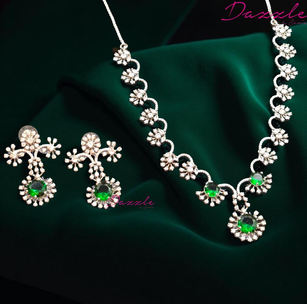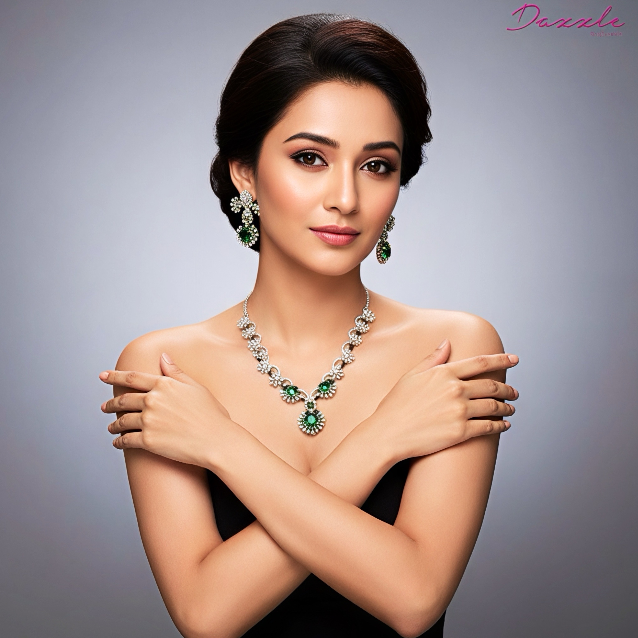 A piece that tells a story of elegance and confidence, this Green AAA Zirconia Necklace is more than just jewellery—it’s an expression of your unique style. The sparkling stones reflect your inner glow, while the rich green tones symbolize growth, beauty, and timeless charm. Wear it and let your presence shine effortlessly.