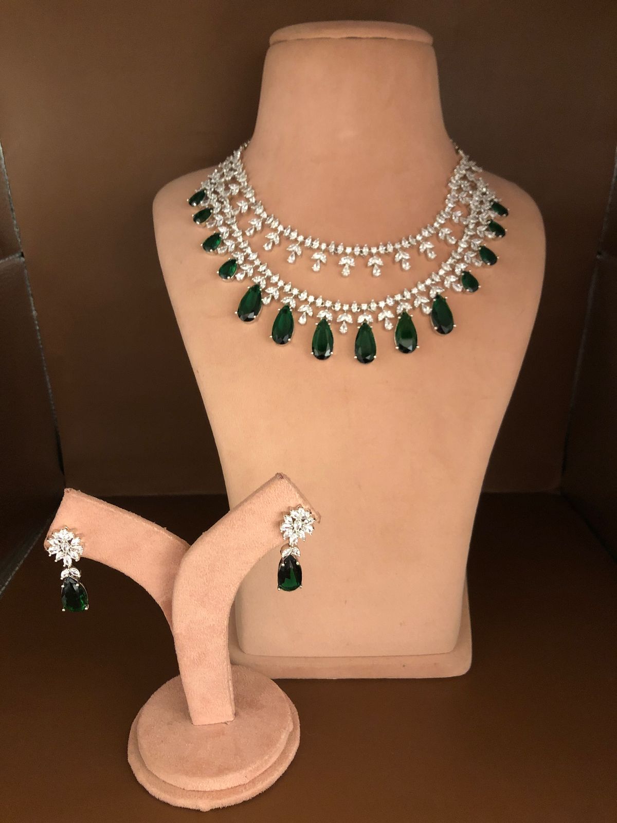 AD Green Embroidered Double Layer Necklace with Matching Earrings