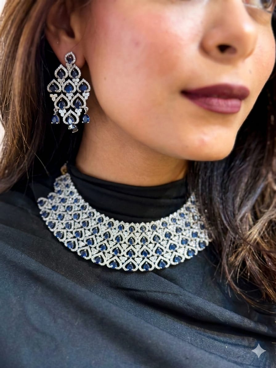 #Dazzlebysonia #LuxuryJewelry #Zirconia #BlueJewelry #StatementNecklace #IndianJewelry #JewelryLovers #NewArrivals
