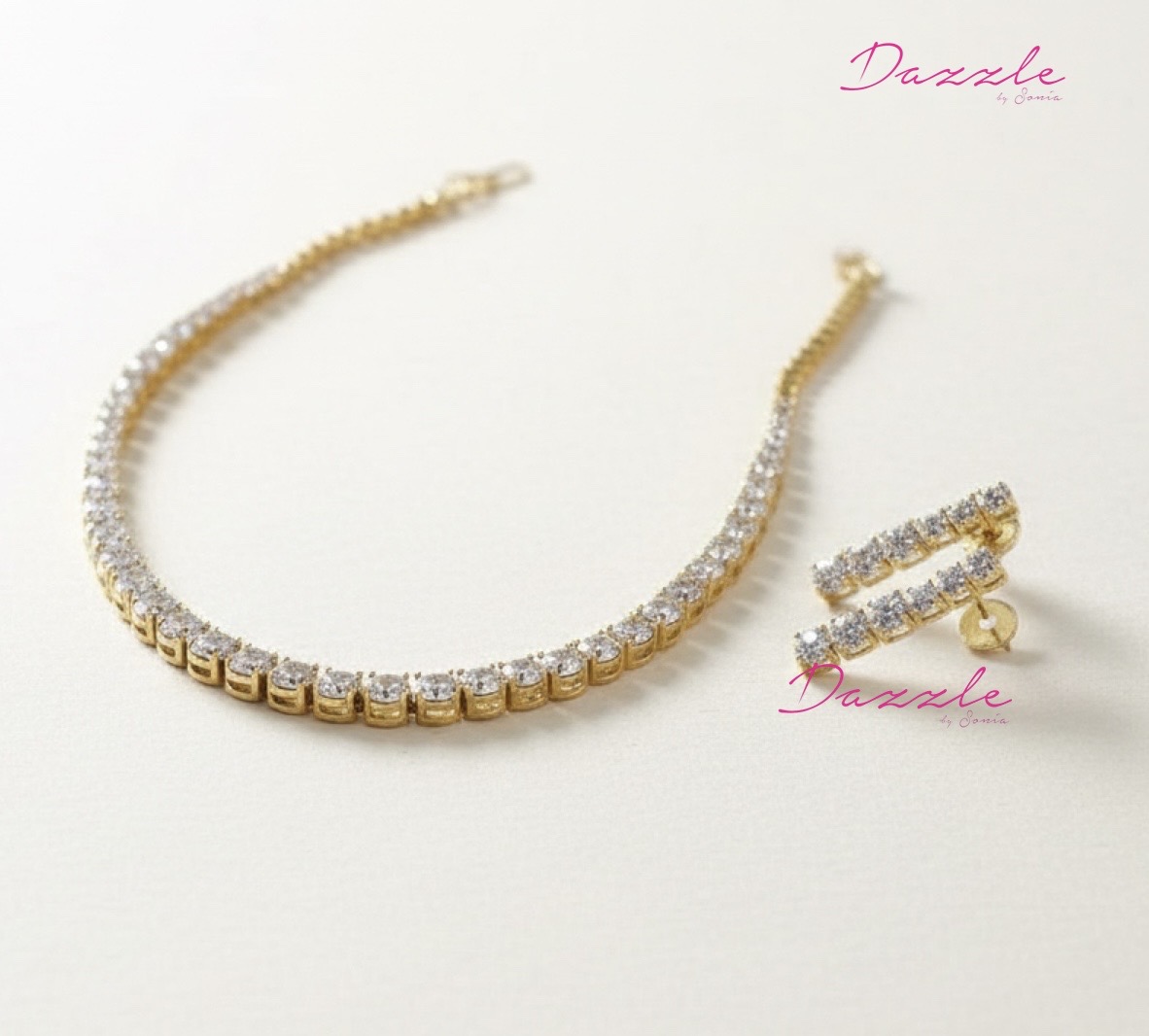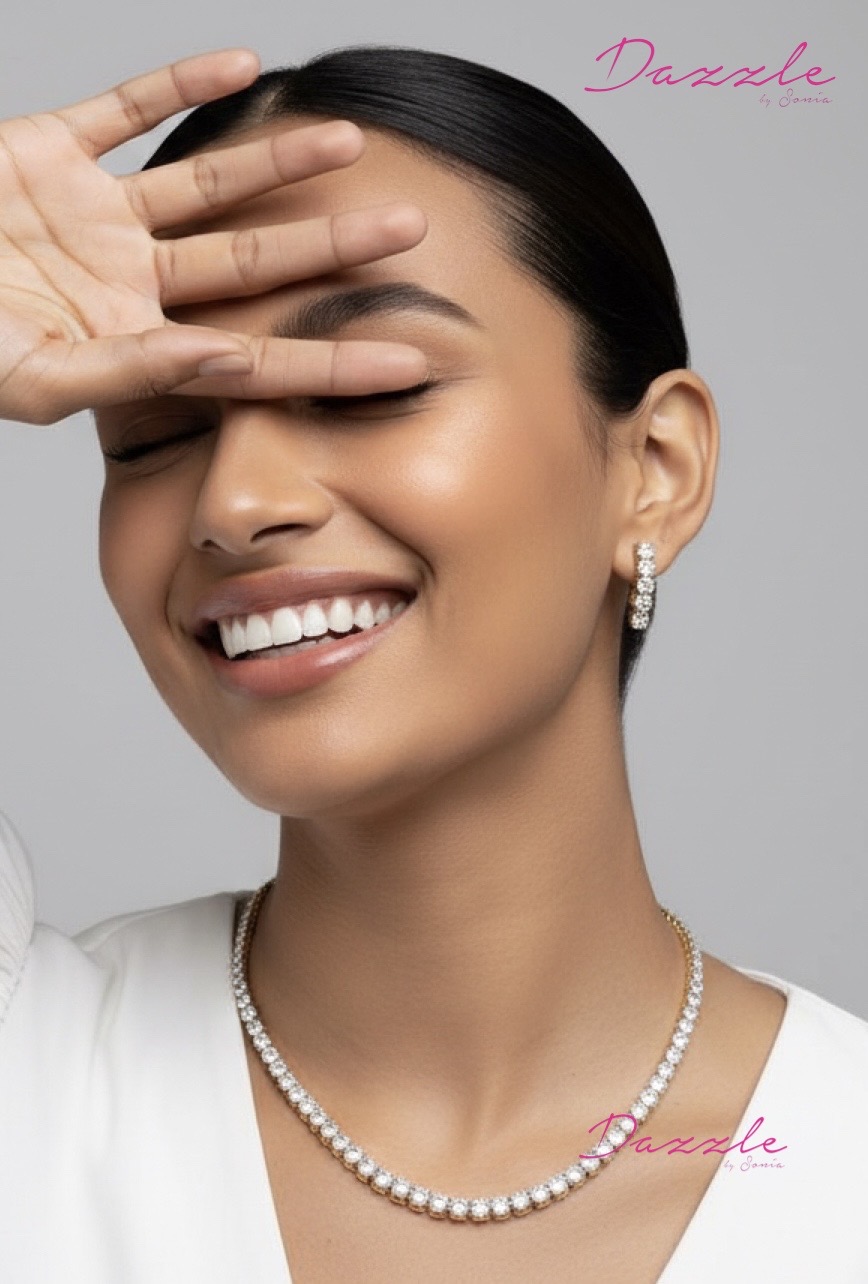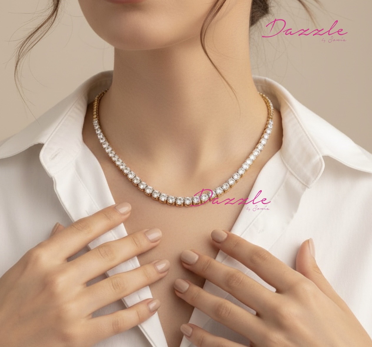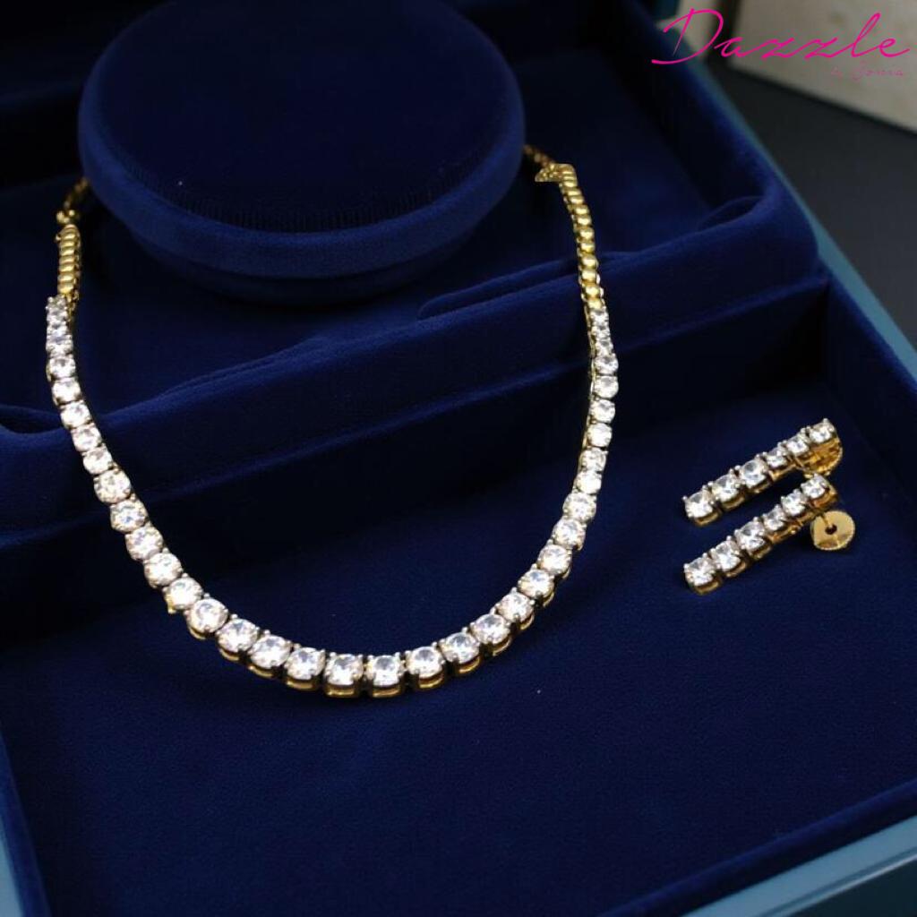 #DazzlebySonia #GoldenNecklace #ZirconiaJewellery #LuxuryJewelry #StatementNecklace #JewelleryLovers #IndianJewelry #WeddingJewellery #PartyWearJewelry #SparkleInStyle #GoldFinish #FashionJewelry #NewArrivals #ShopNow #ElegantStyle