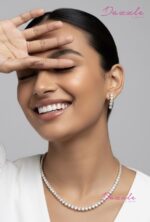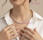This golden zirconia necklace from Dazzlebysonia is designed for those who love refined elegance. Made with durable brass and coated in a premium gold finish, it showcases meticulously set zirconia stones that mimic the brilliance of real diamonds. Whether paired with ethnic wear or modern outfits, this necklace enhances your overall look effortlessly.