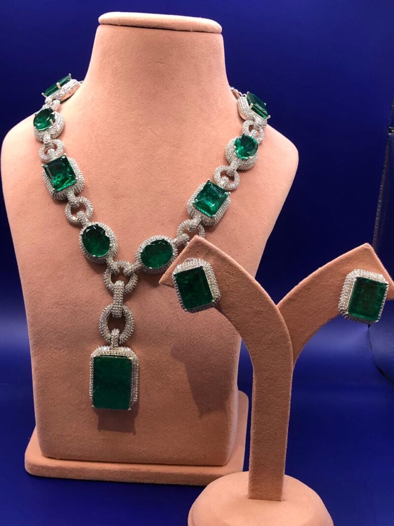 Silver Plated chain Cubic and oval Zirconia/American Diamond Necklace with Earrings.