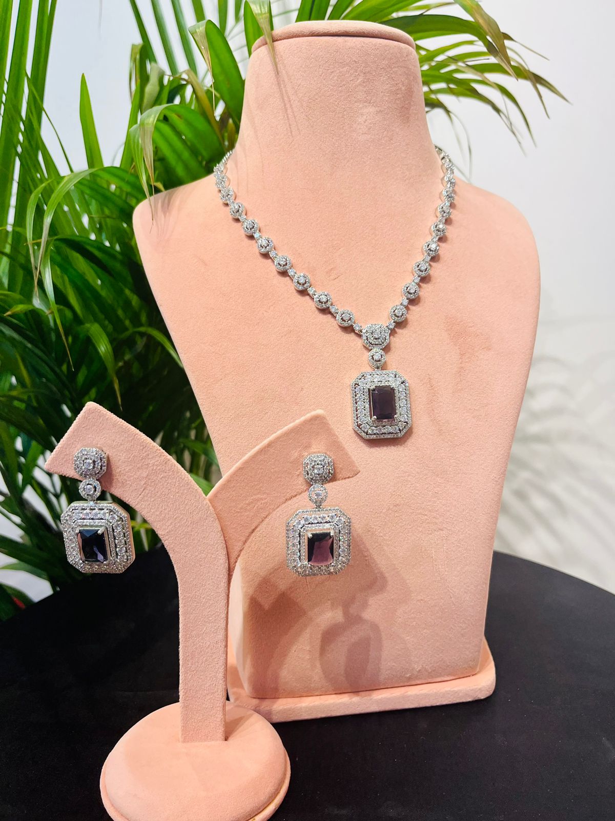 The purple AD necklace with zirconia cubic and pretty set of matching earrings to satisfy your occasion attire.