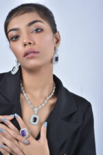 Its intricate design and captivating purple AD and zirconia create a harmonious blend of opulence and grace. Whether you’re attending a wedding, a gala, or a glamorous soirée, this necklace will undoubtedly turn heads and leave a lasting impression.