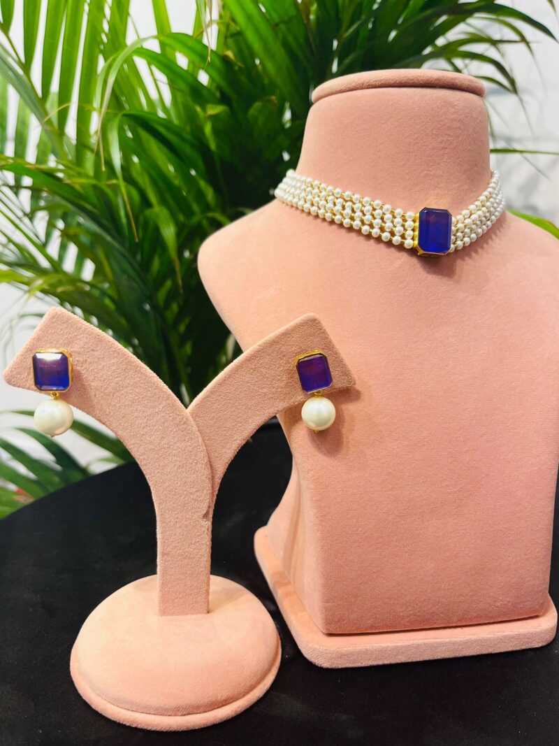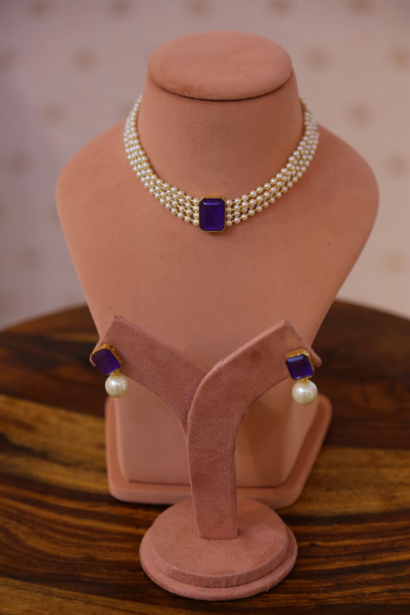 Dazzle by Sonia always concern for all the fashion lover this purple AD Choker with pearls surrounded and pretty earrings for all the festive season.