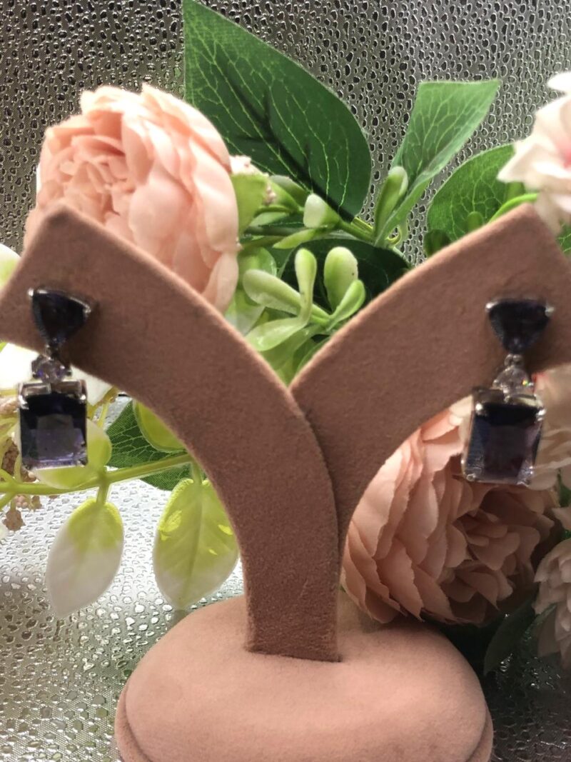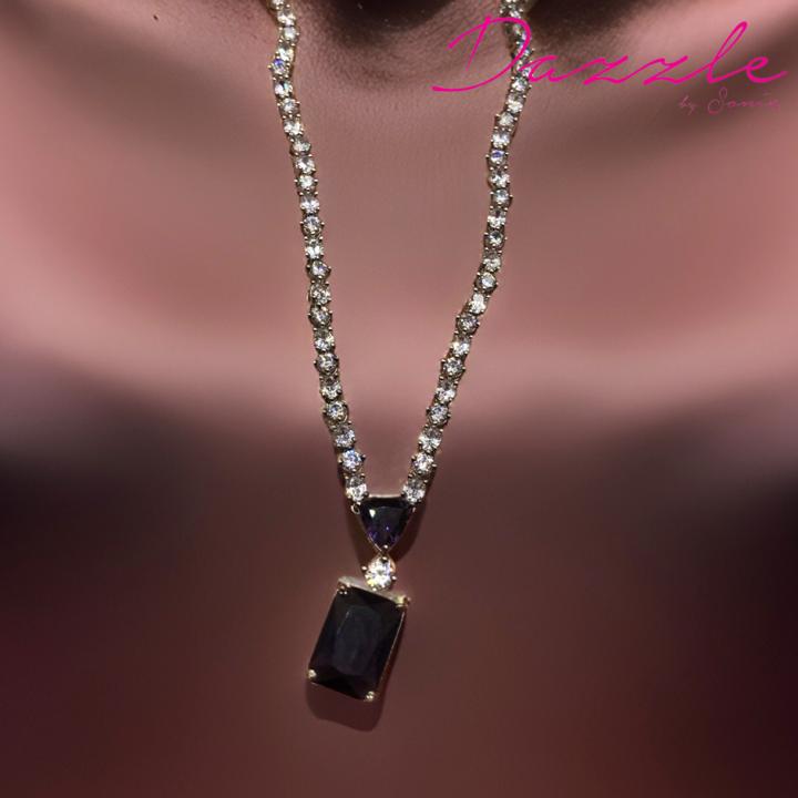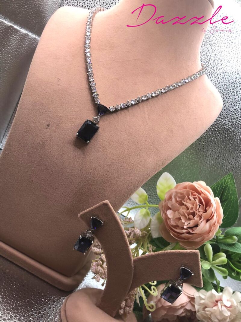 The Purple American Diamonds Necklace with Zirconia Chain and earrings set which will suit for all types of Traditionals dress.
