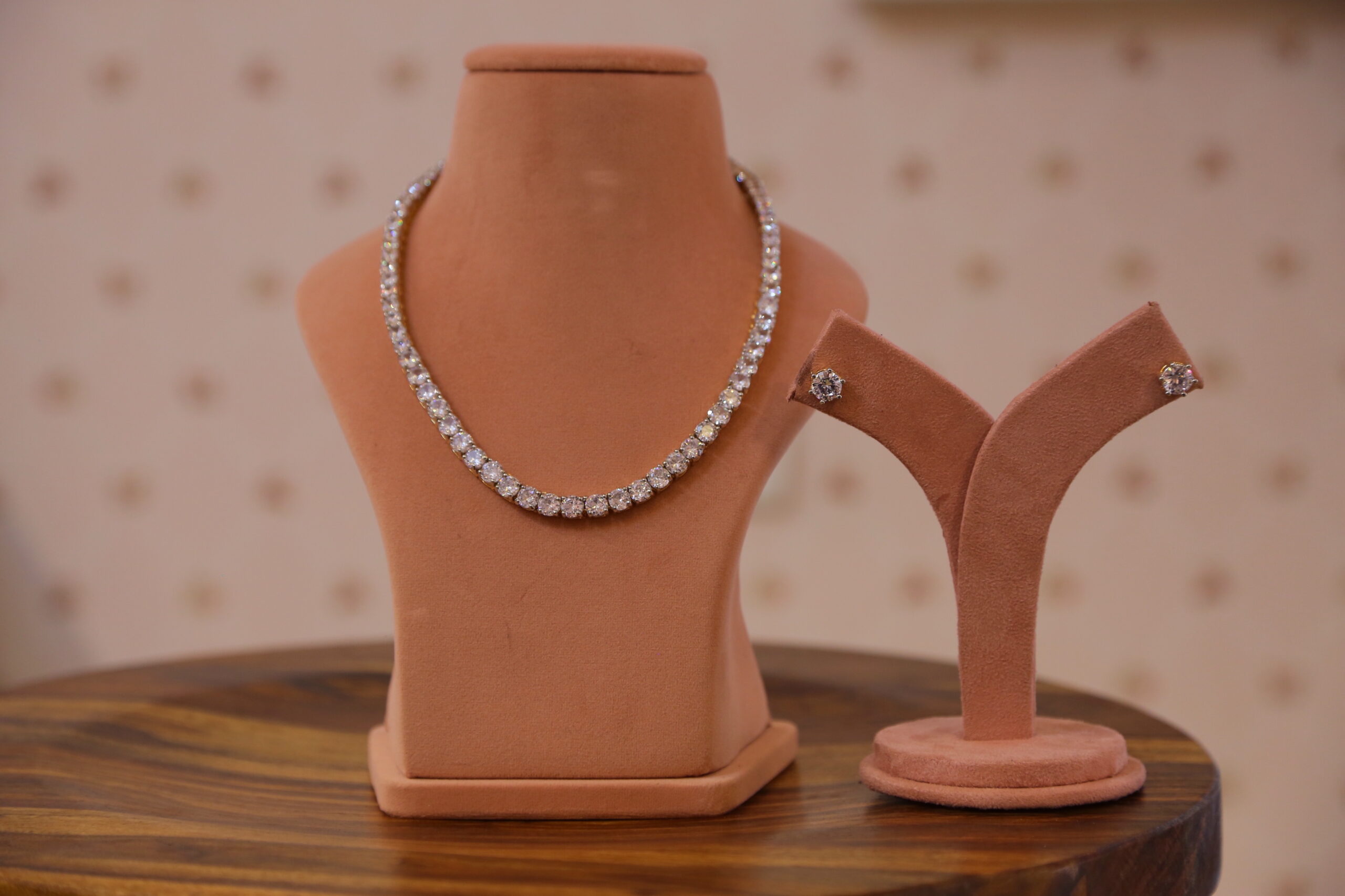 AD Necklace Classy silver Zirconia and matching earrings set.