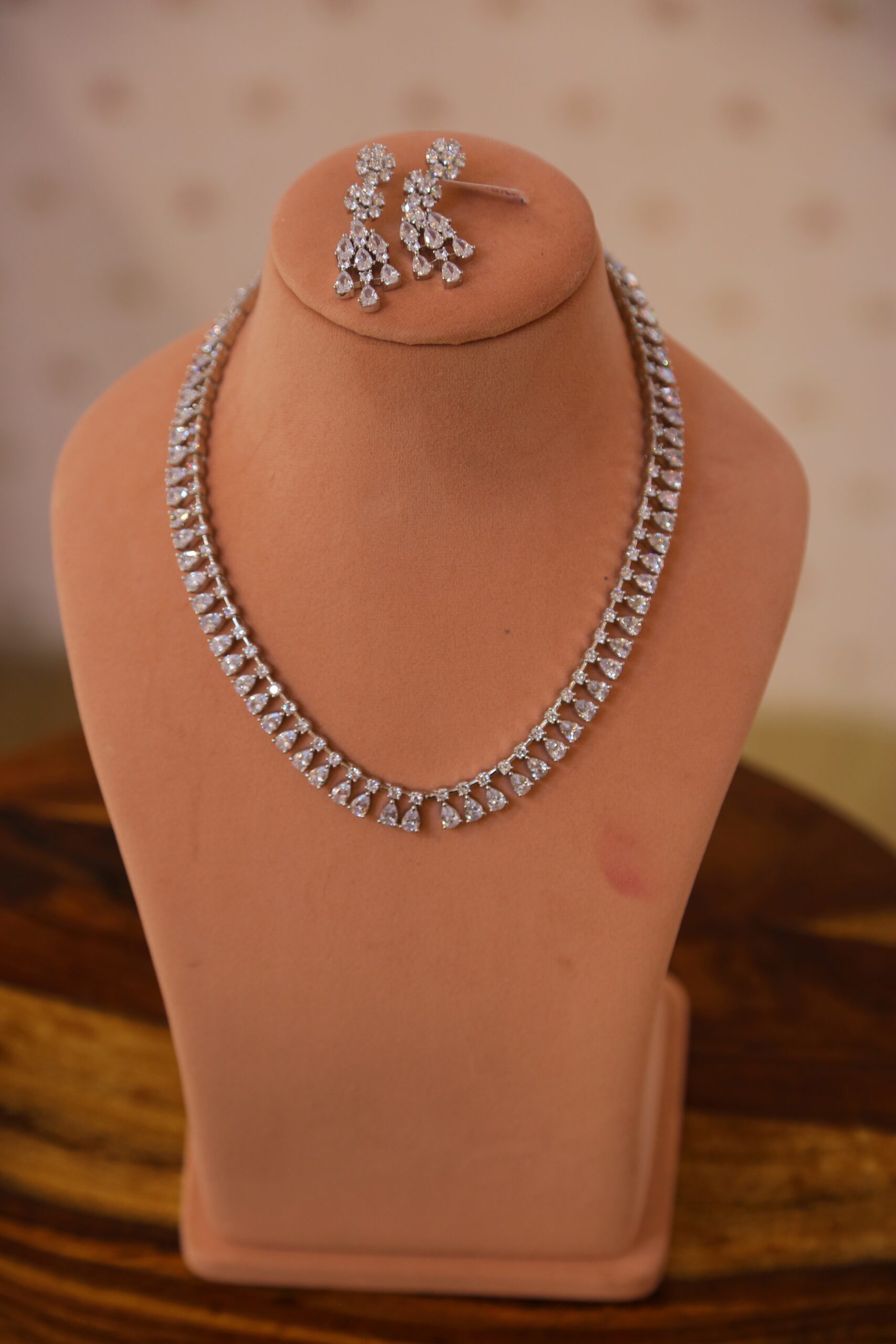 AD white drop shaped zirconia with matching earrings set. to set your elegance to a full 10.