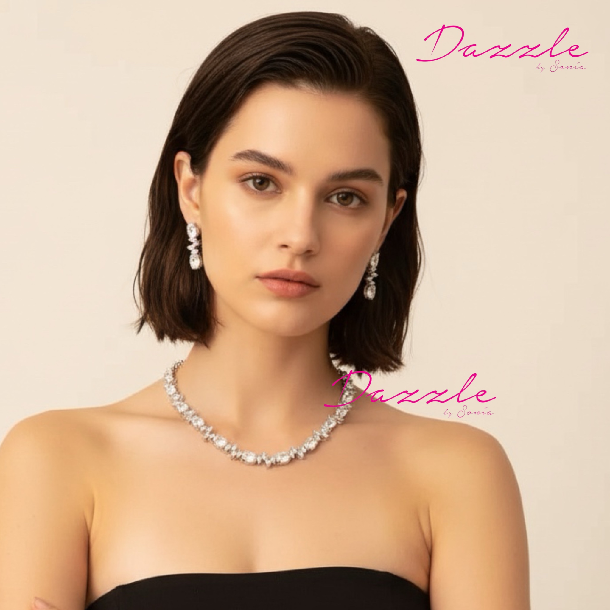 Turn heads instantly with our best-selling Silver AD Necklace. Designed with premium-quality American Diamonds and a flawless silver finish, this piece delivers the look of fine jewelry at an accessible price. Lightweight, versatile, and effortlessly elegant — perfect for weddings, parties, and everyday glam.
