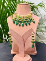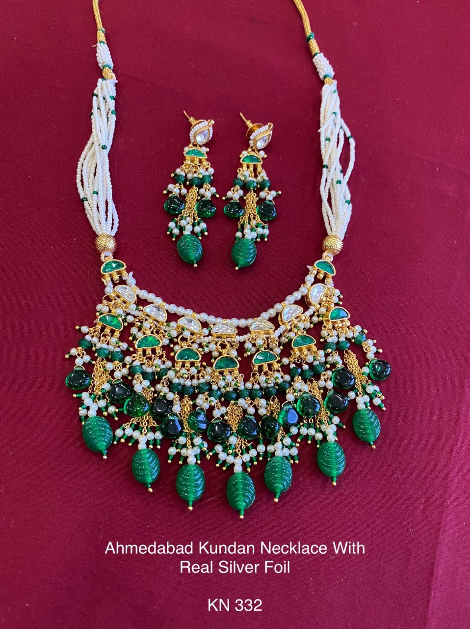 This Green Ahmedabadi Necklace is perfect for special occasions or everyday wear. Its intricate design and beautiful green stones make it a stunning addition to any outfit.