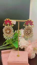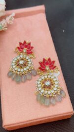 Ahemdabadi Kundan Lotus flower look on top long earring.