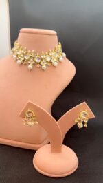Traditional ahedabadi Kundan & Pearl Gold Plated Choker Necklace Set for Women will complement any Indian attire. Women Love Jewelry as it not only enhances their beauty, but also gives them the social confidence. Make your moment memorable with this range. This jewel set features a unique one of a kind traditional embellish with antic finish. Earrings are very easy to use being lightweight and has a design which makes it very comfortable.