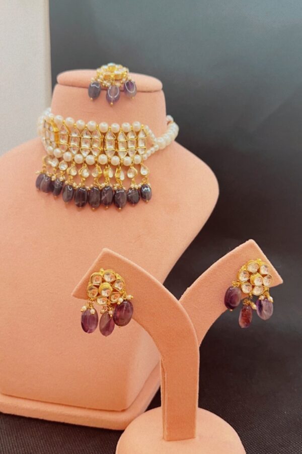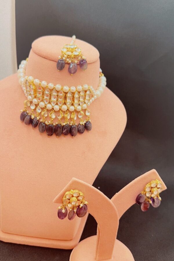 Oval shape Kundan stones with multi pearls gold plated finishing.