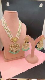 Mint green traditional Ahmedabad  Kundan necklace with gold polish earrings.