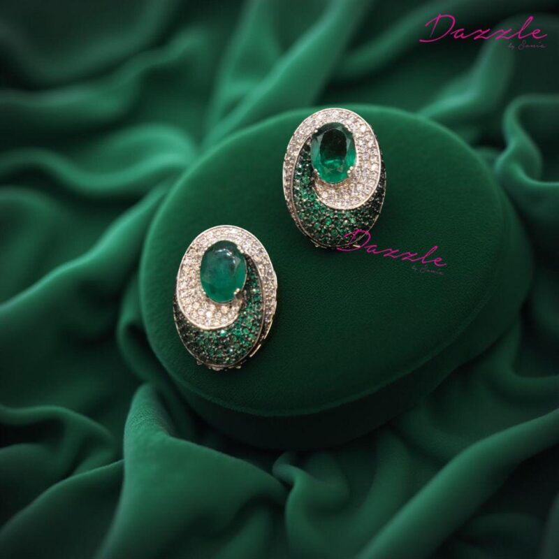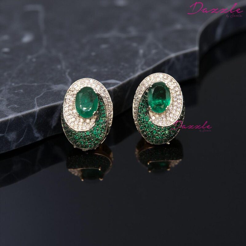 Stylish green zirconia studs crafted on alloy for a timeless and refreshing charm.