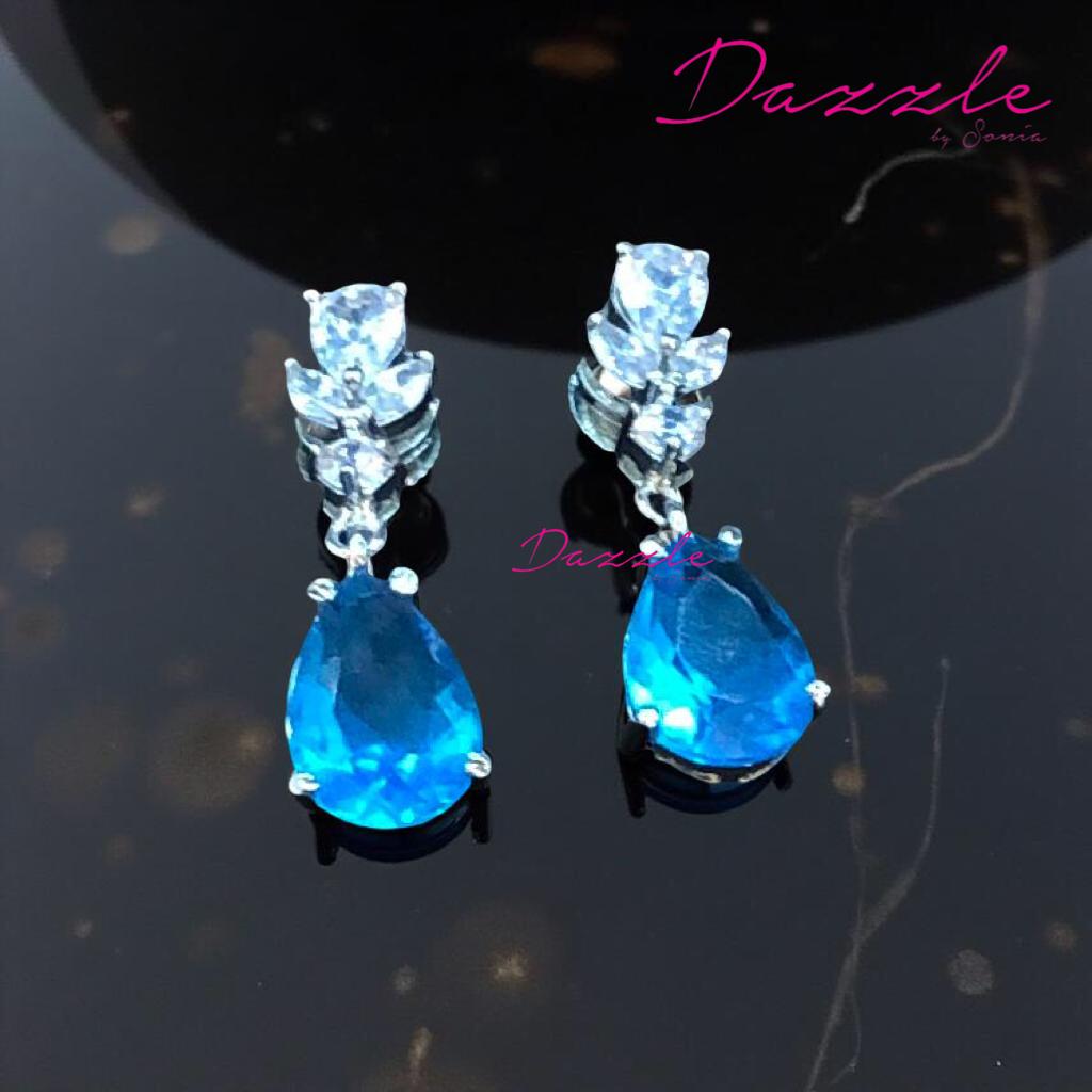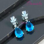 – Design: Drop earring with stunning aqua semi-precious stone accents