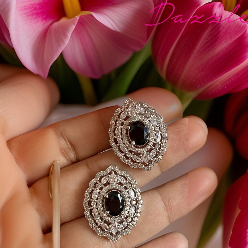 - Black Stud Earrings – Brass with AAA Zirconia (High Quality)