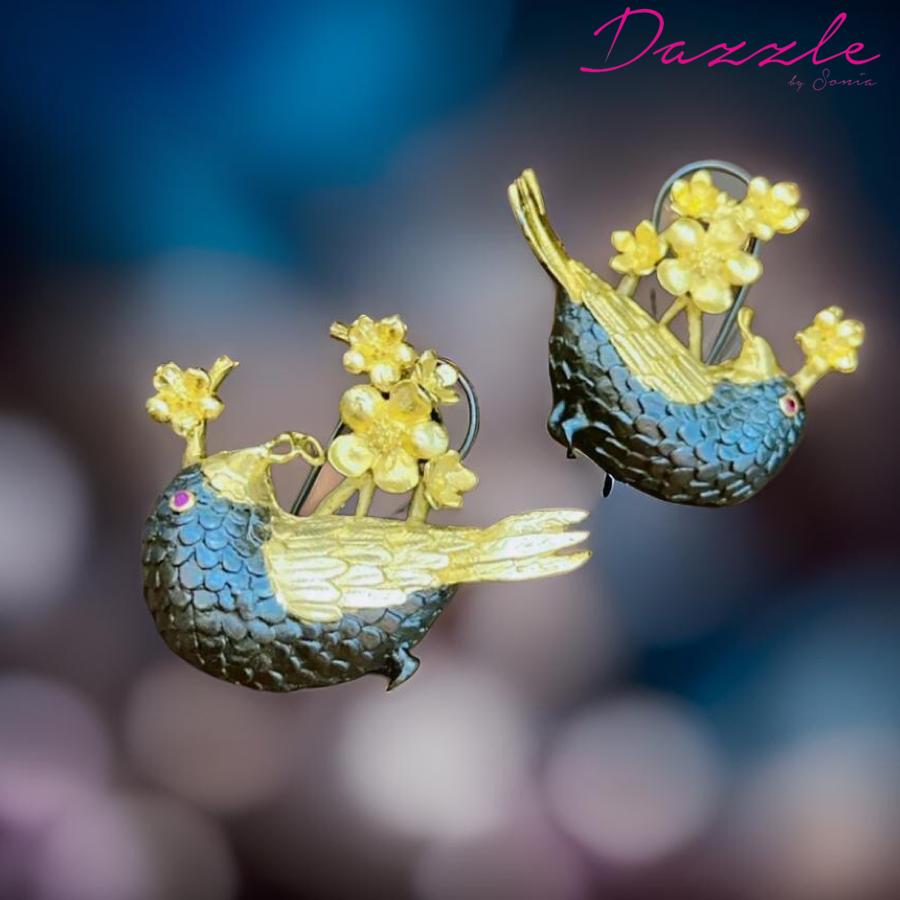 – Bird design: Intricately crafted with enamel, rhinestones, or other materials