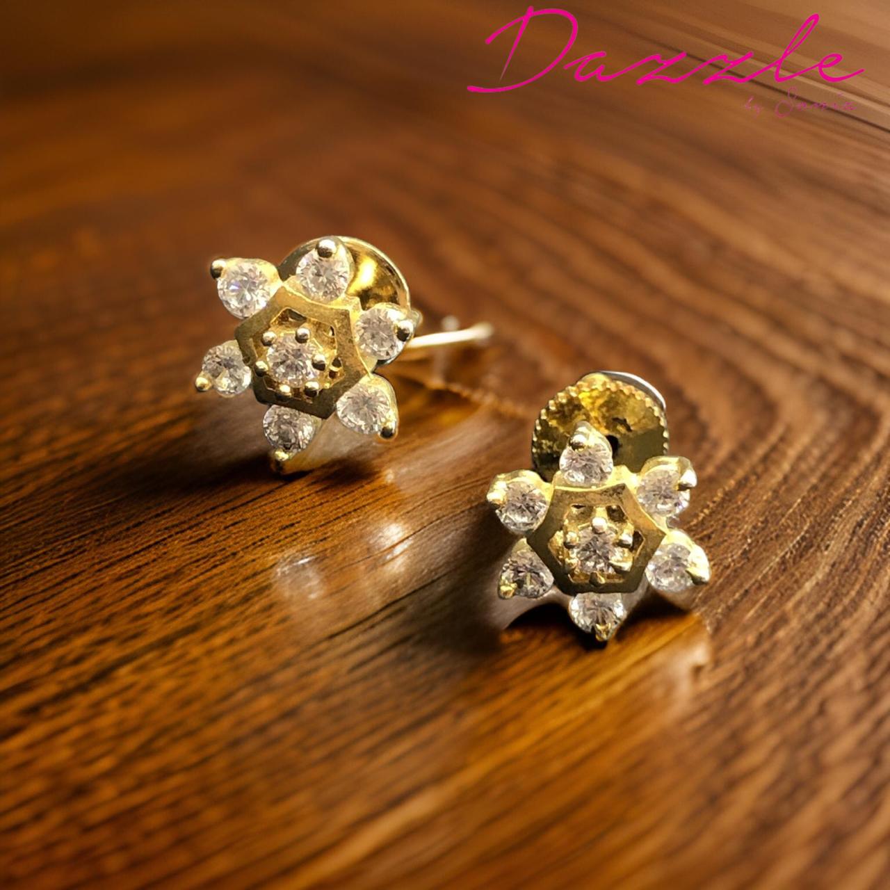 CUBIC ZIRCONIA MADE WITH FLORAL SHAPE GOLDEN TOPS