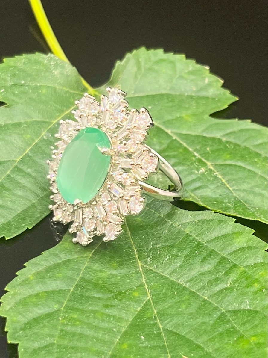 CUBIC ZIRCONIA MADE WITH OVAL GREEN-EMERALD RING