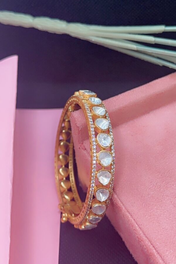 “CUBIC ZIRCONIA DESIGNED FLORAL SHAPE MADE WITH GOLD PLATED BANGLES” has been added to your cart. View cart