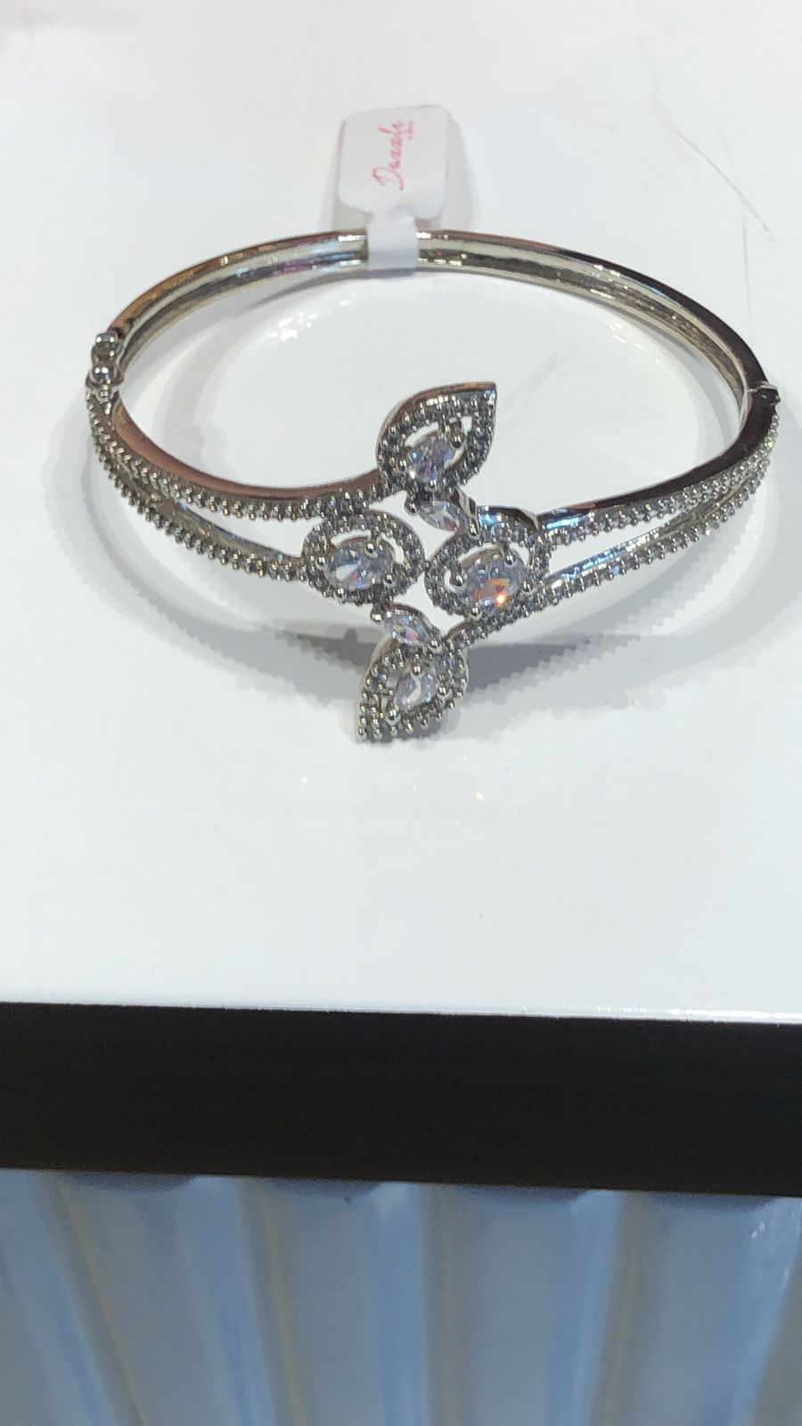 CUBIC ZIRCONIA MADE WITH SILVER PLATED BRACELET.
