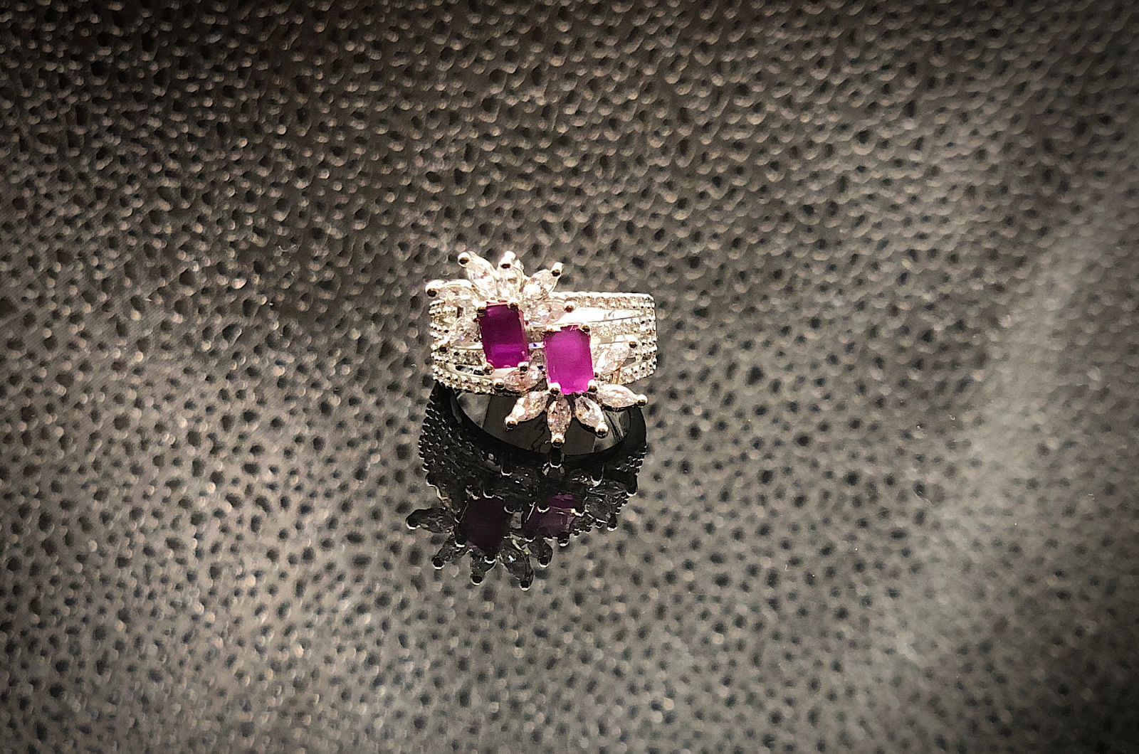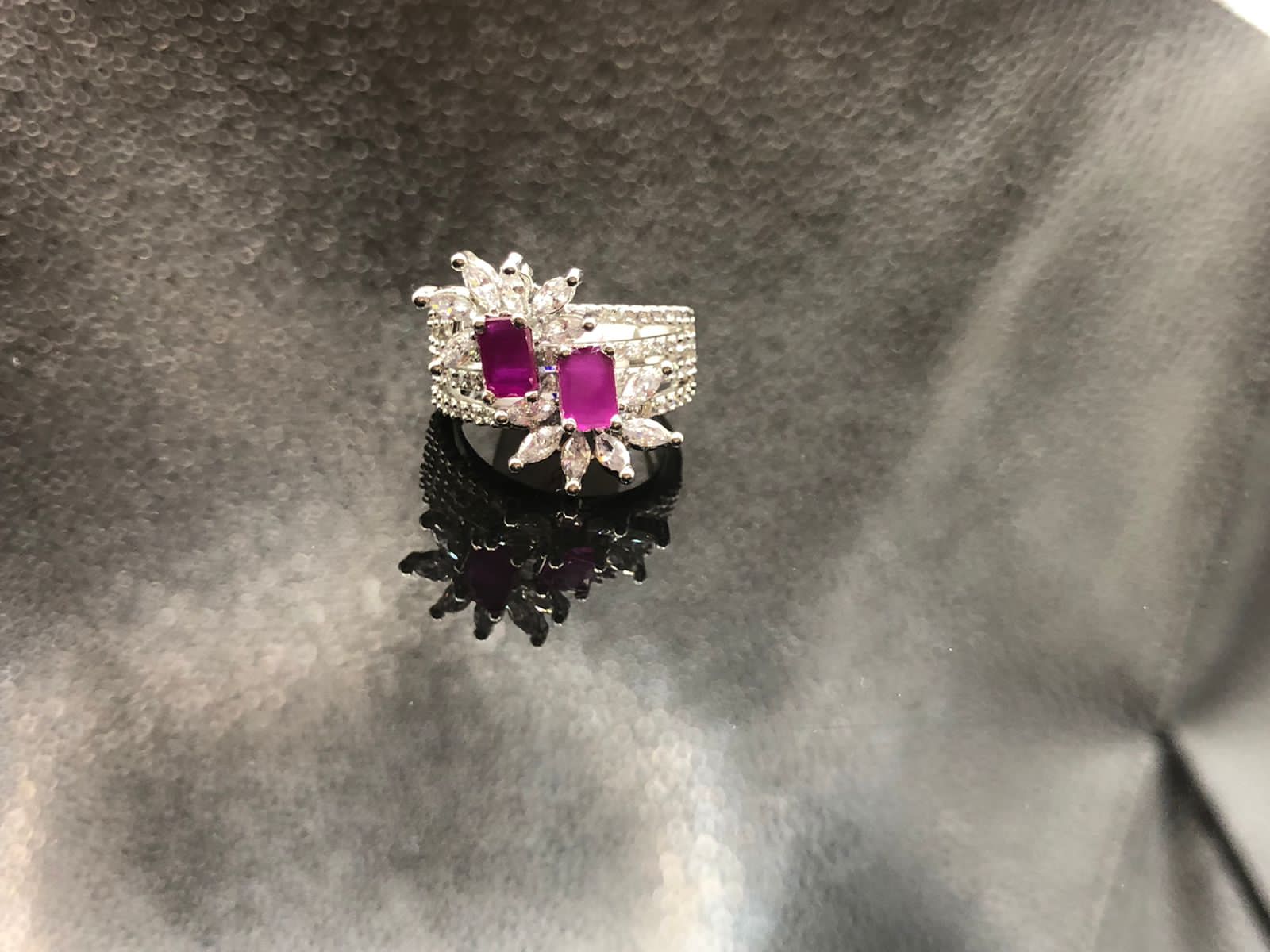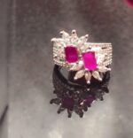 FLORAL SHAPE SILVER PLATED MADE WITH DOUBLE RUBY STONES RING