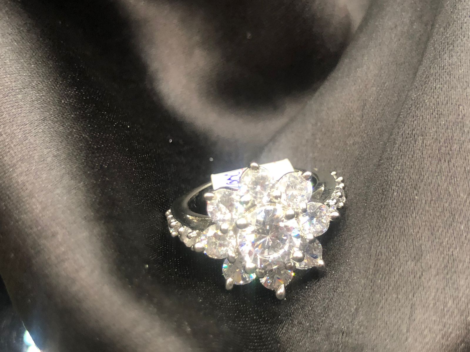 FLORAL SHAPE SILVER PLATED MADE WITH CUBIC ZIRCONIA RINGS.