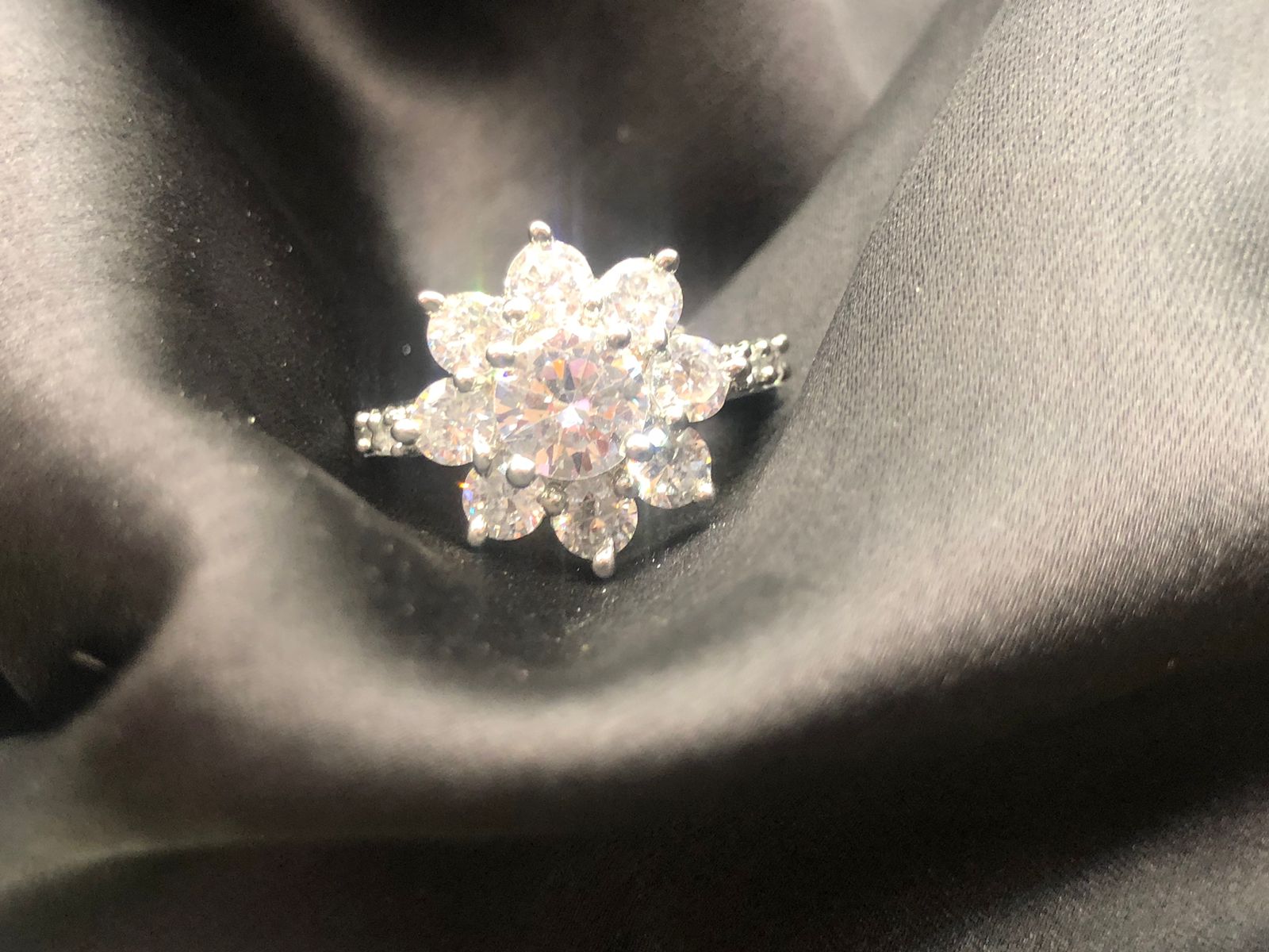 FLORAL SHAPE ZIRCONIA MADE WITH SILVER PLATED RING