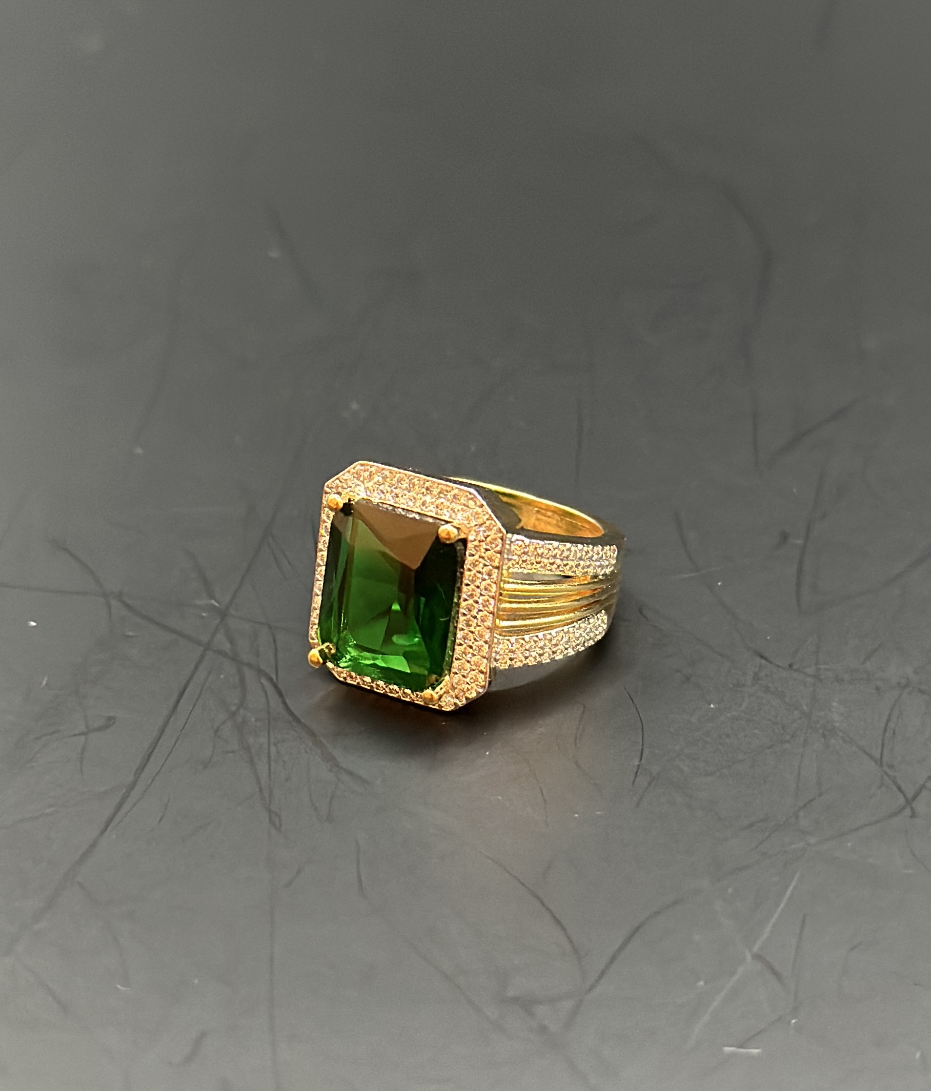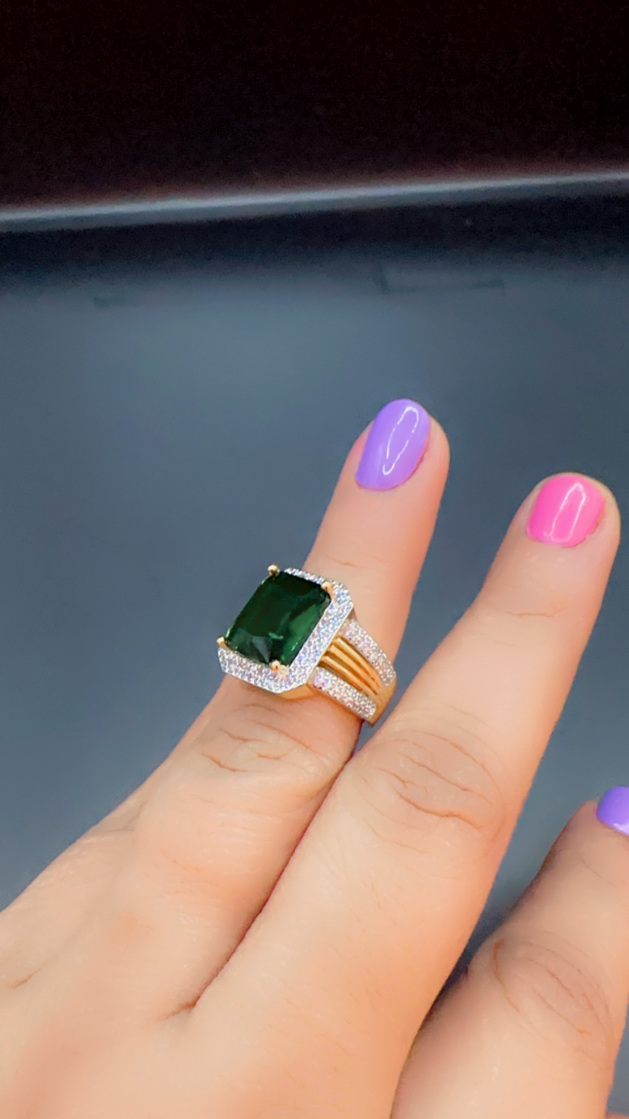 GOLD PLATED MADE WITH CUBI ZIRCONIA AND RECTANGLE GREEN-EMERALD RING.