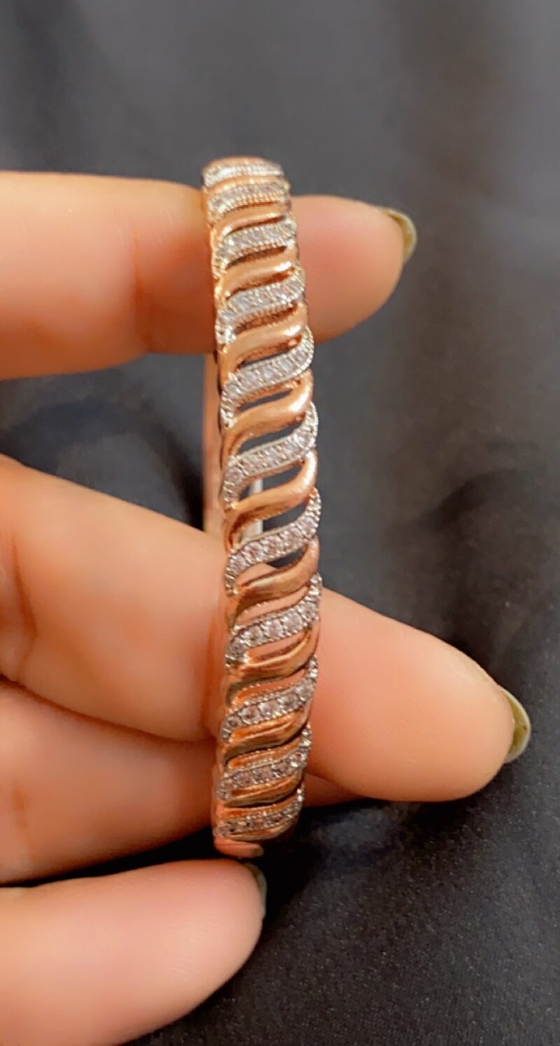 This gold bracelet for women is crafted in a stunning leaf design carefully embedded with finely-cut American Diamonds. It has an intricate pattern exquisitely crafted by skilled craftsmen. This bracelet for girls has excellent finishing