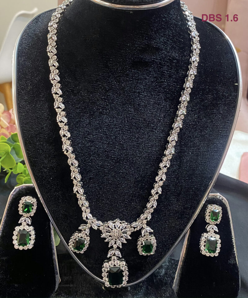 Emerald Elegance Necklace Set: Shine bright with this stunning green emerald AD necklace set, complete with matching earrings.