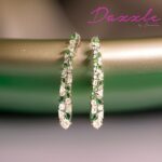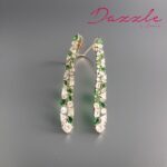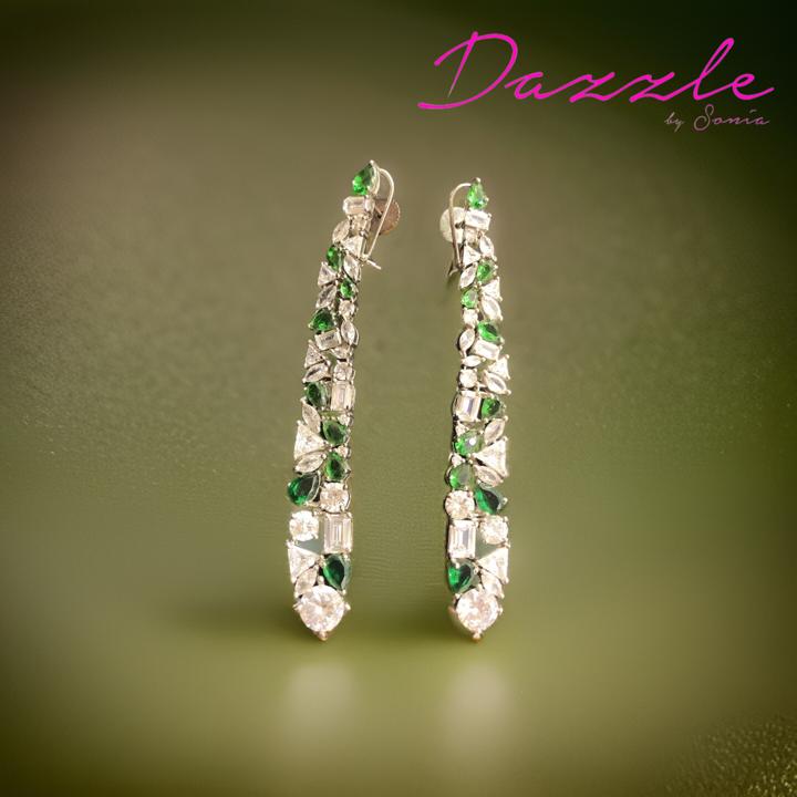 Long alternate arrangements green Emerald stones and Zirconia stones Earring designed by Dazzle by Sonia for Marriage party and other Occasions.
