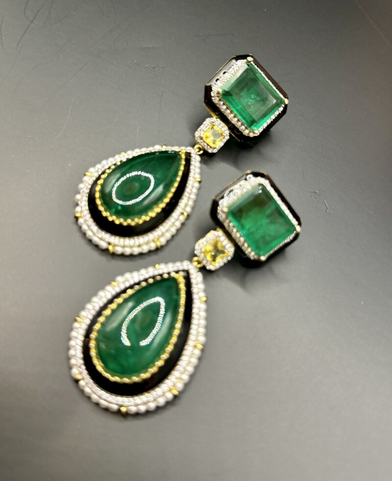 Green earrings are the epitome of fresh and natural style! These earrings feature a stunning green stone that captures the essence of the great outdoors and brings a pop of color to any outfit. The stone is set in a chic, contemporary design that makes these earrings a versatile accessory for any occasion. Whether you’re looking to add a touch of nature to your everyday look or make a bold statement at your next event, green earrings are the perfect choice. Made with high-quality materials and expert craftsmanship, these earrings are designed to last and make a cherished addition to any jewelry collection. So why wait? Add a pop of green to your look today!