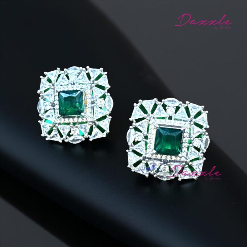Elegant and sparkling, these green alloy-based zirconia studs complete any outfit with ease.