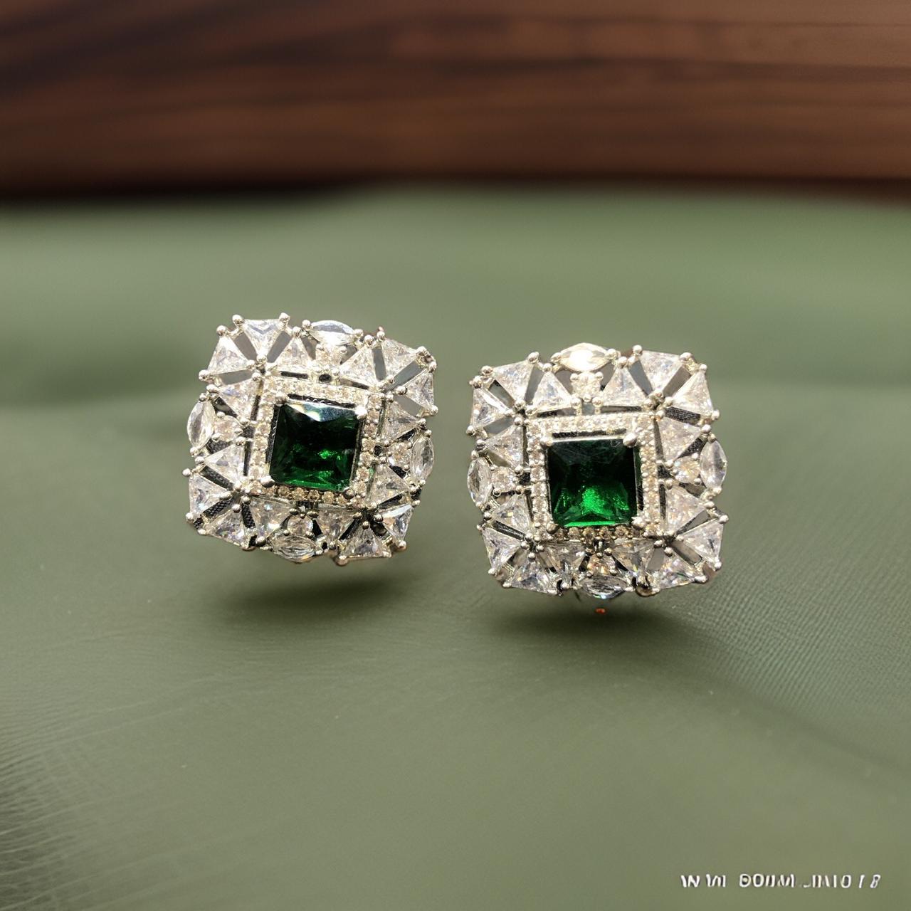 Stylish green zirconia studs crafted on alloy for a timeless and refreshing charm.