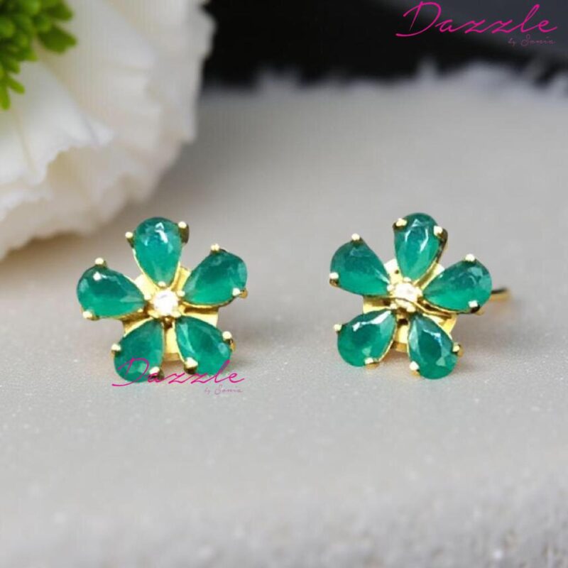 Stylish green zirconia studs crafted on alloy for a timeless and refreshing charm.