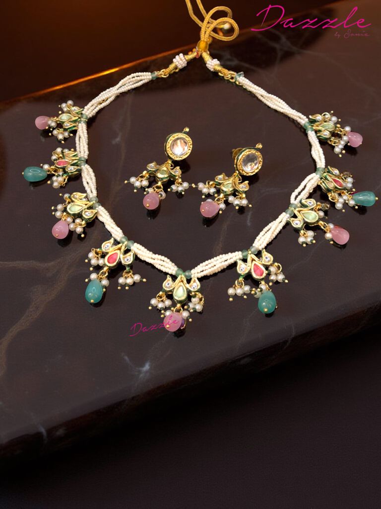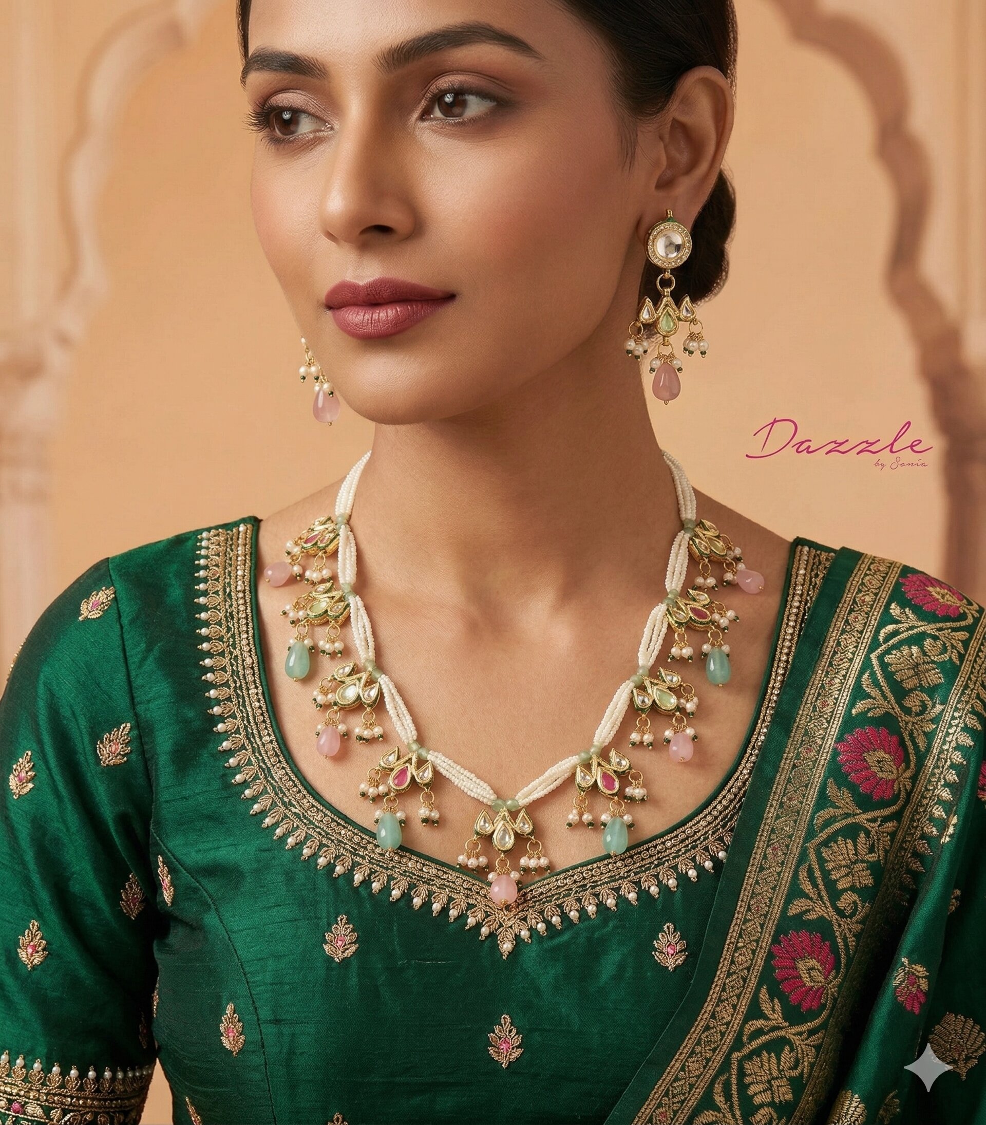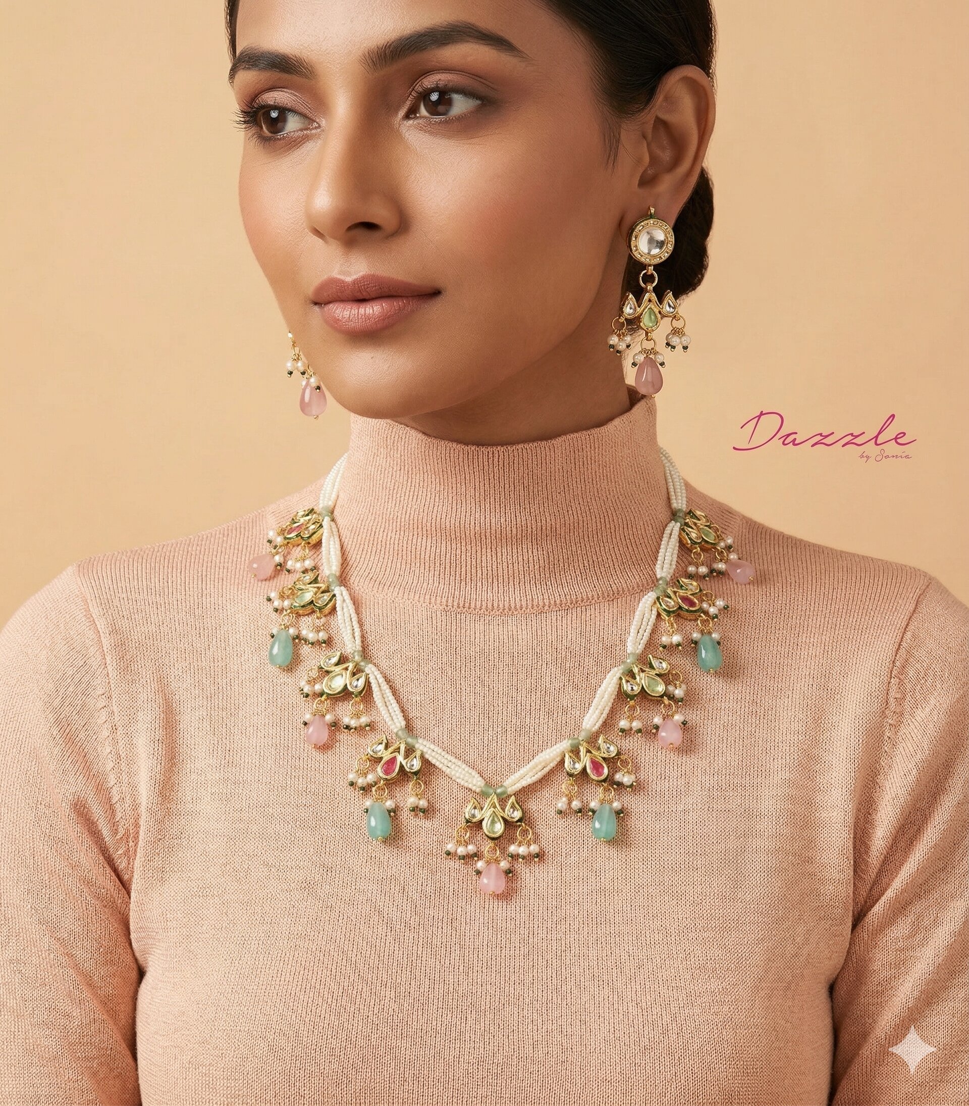 Blending classic tradition with contemporary appeal, this Kundan Meenakari Necklace is a must-have for modern women who love heritage jewelry. The intricate kundan setting offers timeless elegance, while the meenakari work adds a vibrant and artistic touch.