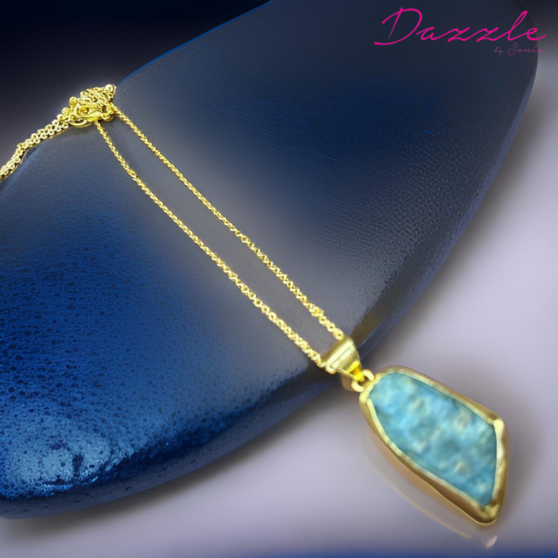 Here are some description options for an Aqua Natural Pendant Necklace by Dazzle by Sonia: