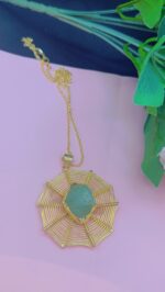 Flower like Handmade Necklace Golden and Aqua color mix.