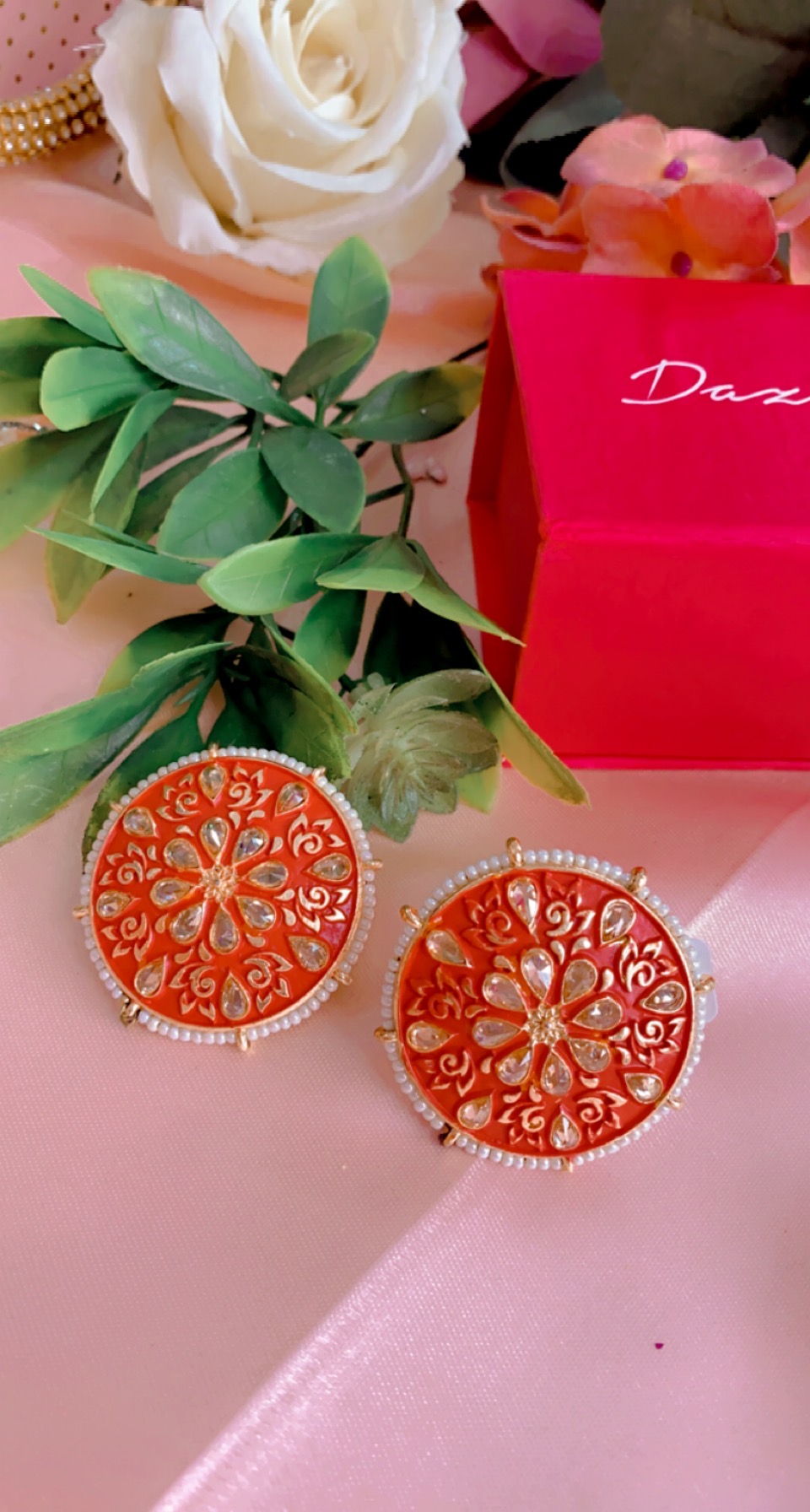 Floral Polki Stone Arrangement Orange Kundan Cheap Tops