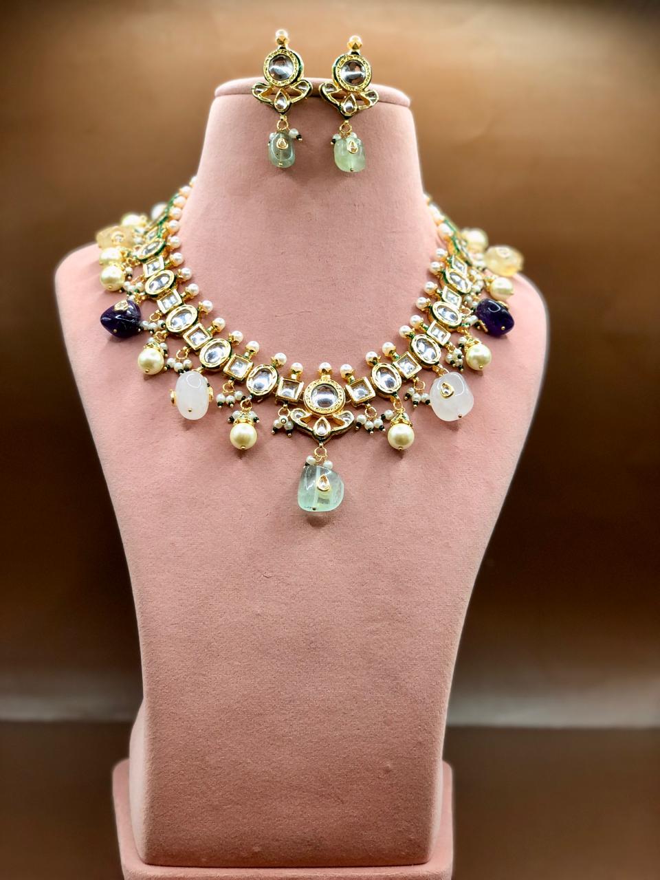 Vibrant Kundan Kalli Necklace Set: A stunning combination of multi-coloured stones and intricate kalli design