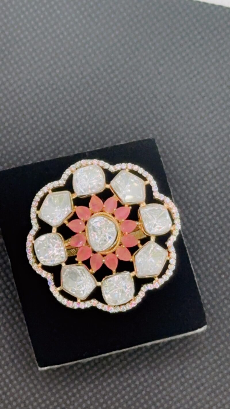 MULTI KUNDAN STONES AND SHAPE MADE WITH PINK COLOR STONES RING