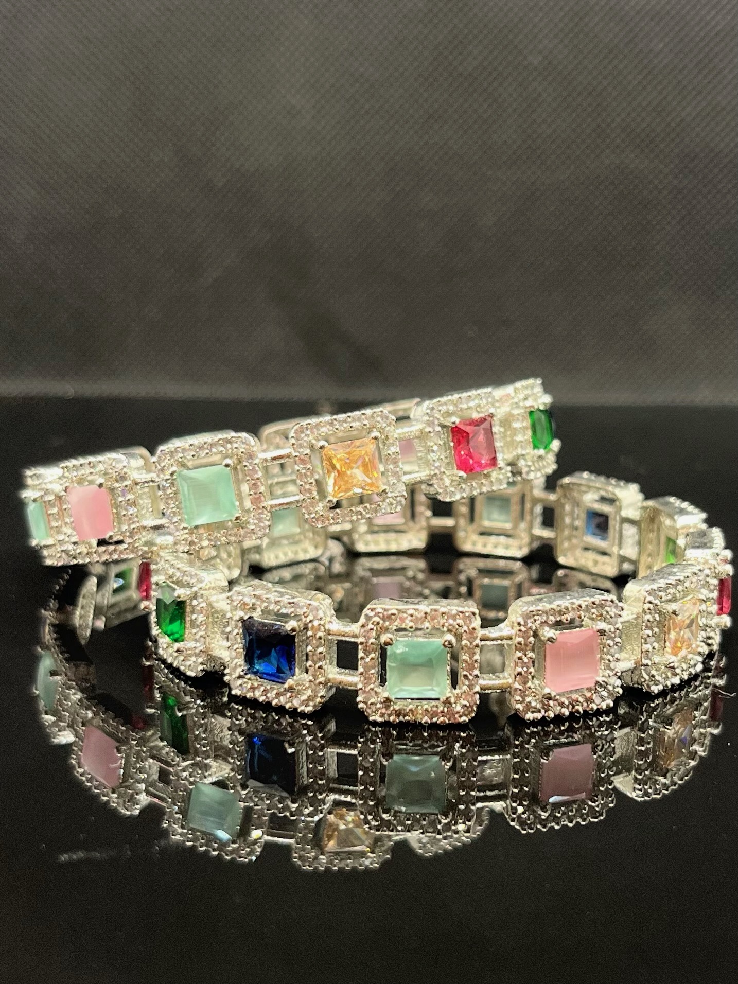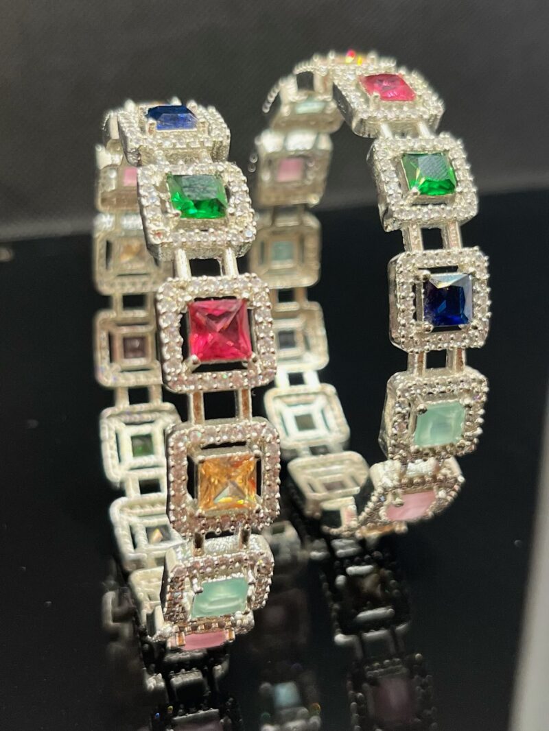 MULTICOLOR AD STONES MADE WITH SILVER PLATED BANGLES