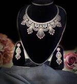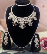 1. “Elevate your style with this stunning light pink necklace set, featuring delicate chainwork and matching earrings. Perfect for special occasions or everyday elegance.”