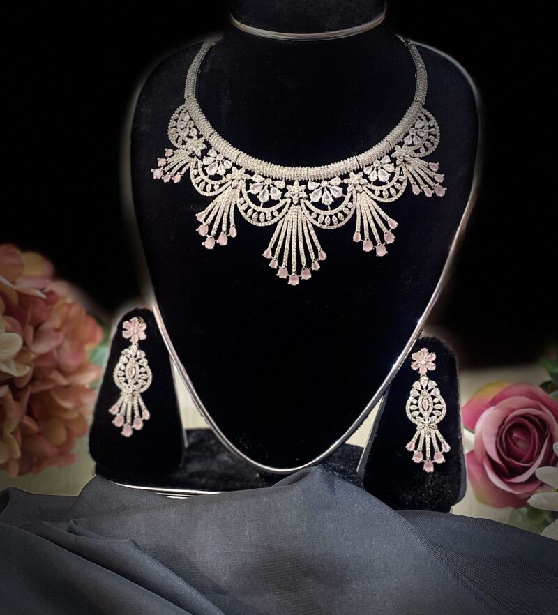 2. “Make a statement with this gorgeous light pink jewelry set, combining sophistication and femininity.”