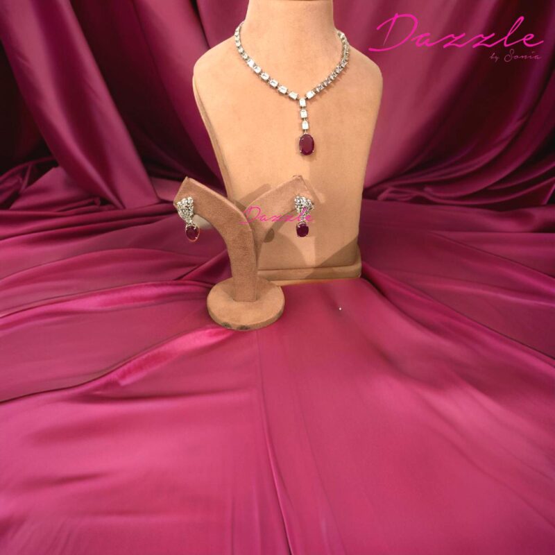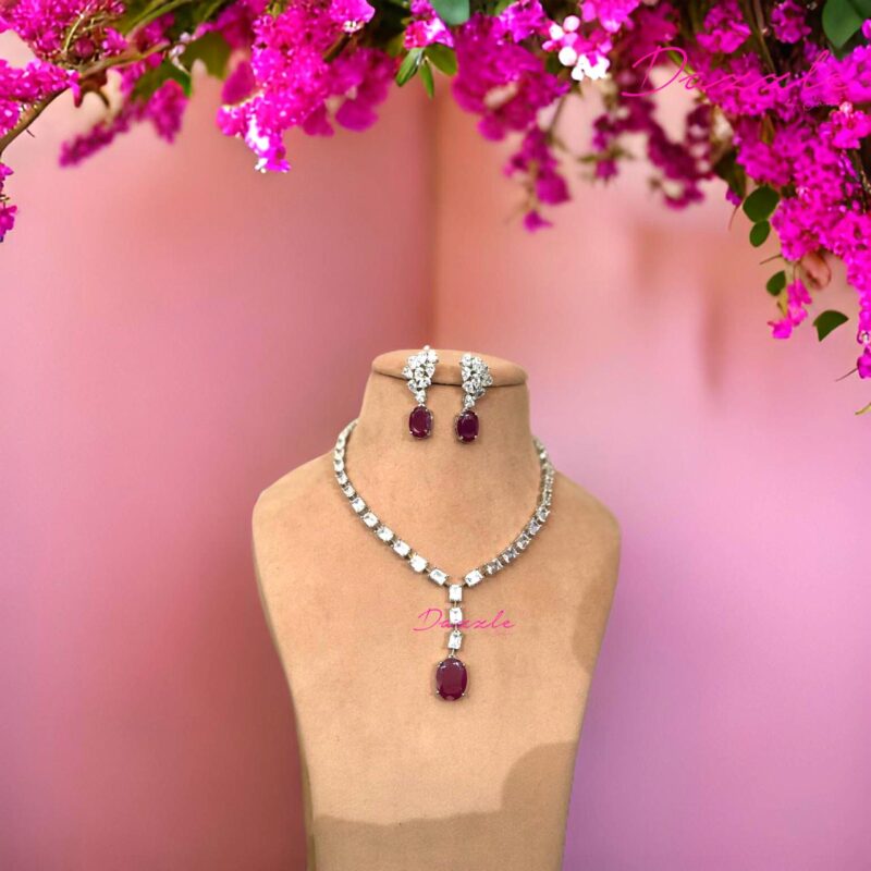 Dazzling Red Zirconia Necklace: Elevate your style with this stunning silver-plated brass necklace featuring vibrant red zirconia stones.